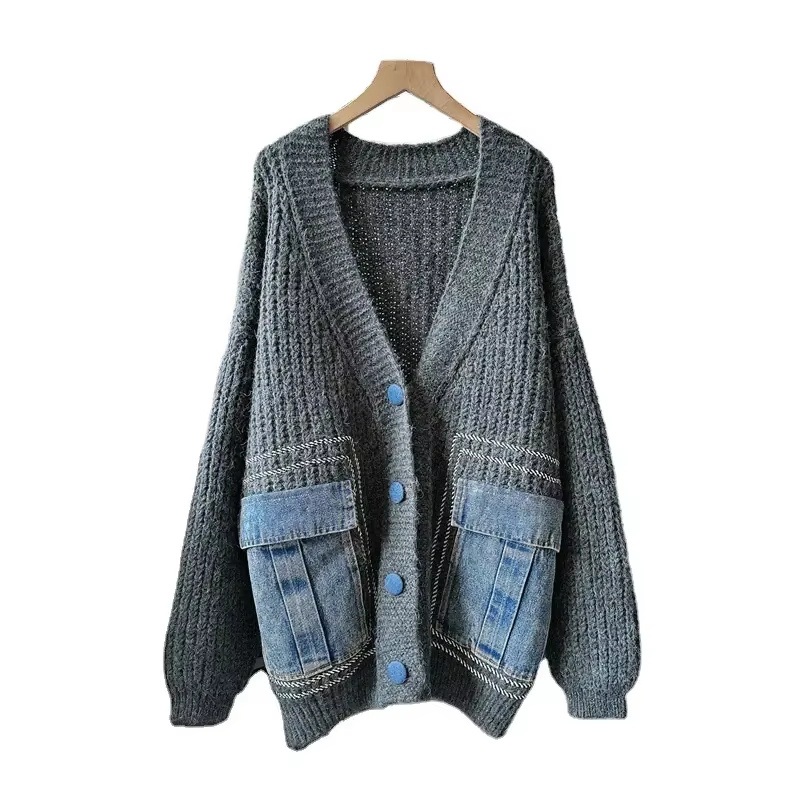 New Fashion Patchwork Denim Pocket Womens Sweaters – Sweater and Womens Sweaters price
