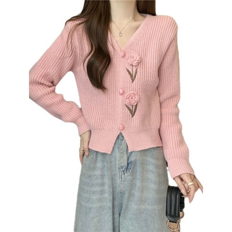 Nnr Multi-Color Complex Process Embroidered Flower Sweater Single Row Button Women Short Lady Style – Sweater and Women Sweater price