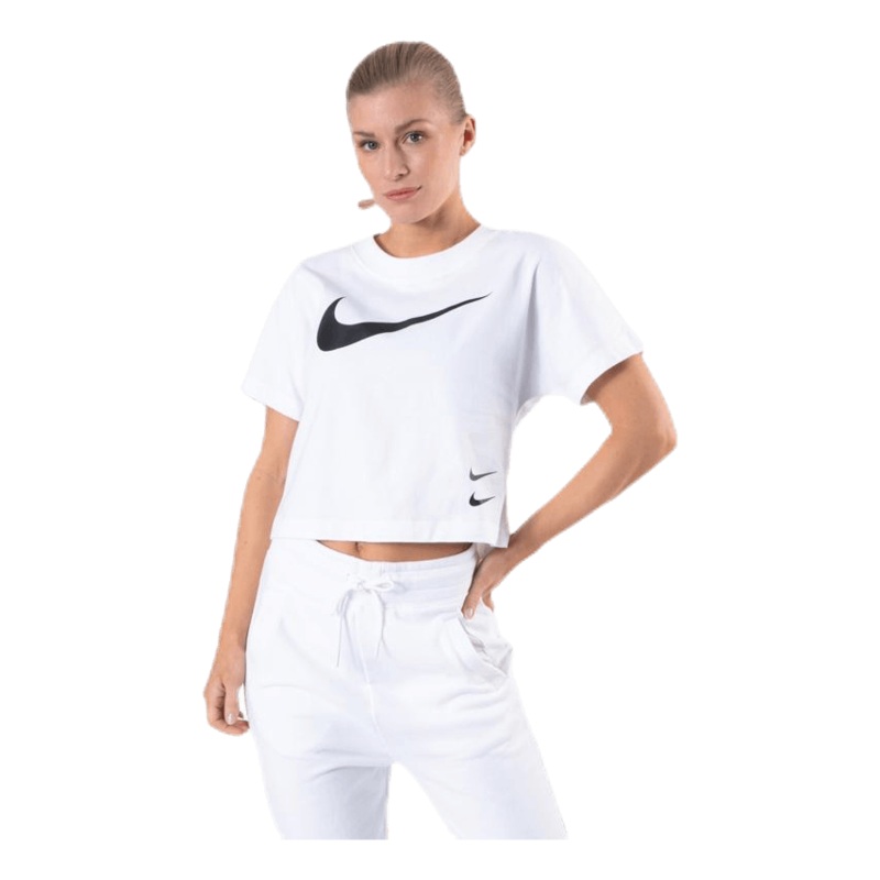 CROPPED COMFORT. STREET-READY STYLE.Made from a premium cotton blend, the Nike Sportswear Swoosh Short-Sleeve Top gives you casual comfort with modern, street-ready style.Premium ComfortHeavy cotton blend is soft and comfortable with a premium feel.Cropped