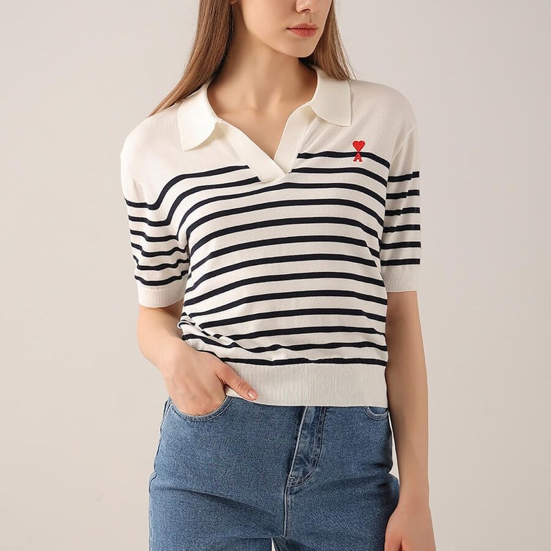 Summer Short Sleeve Stripe Polo Sweater Knitwear