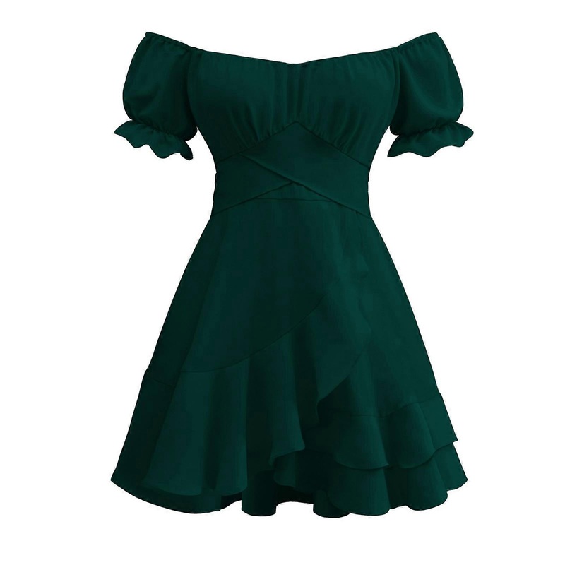Be the first to review “Off Shoulder Dress Ruffle Hem Balloon Sleeve High Waist Polyester Fiber Summer Dress for Party Club Blackish Green XL | Fruugo SG”