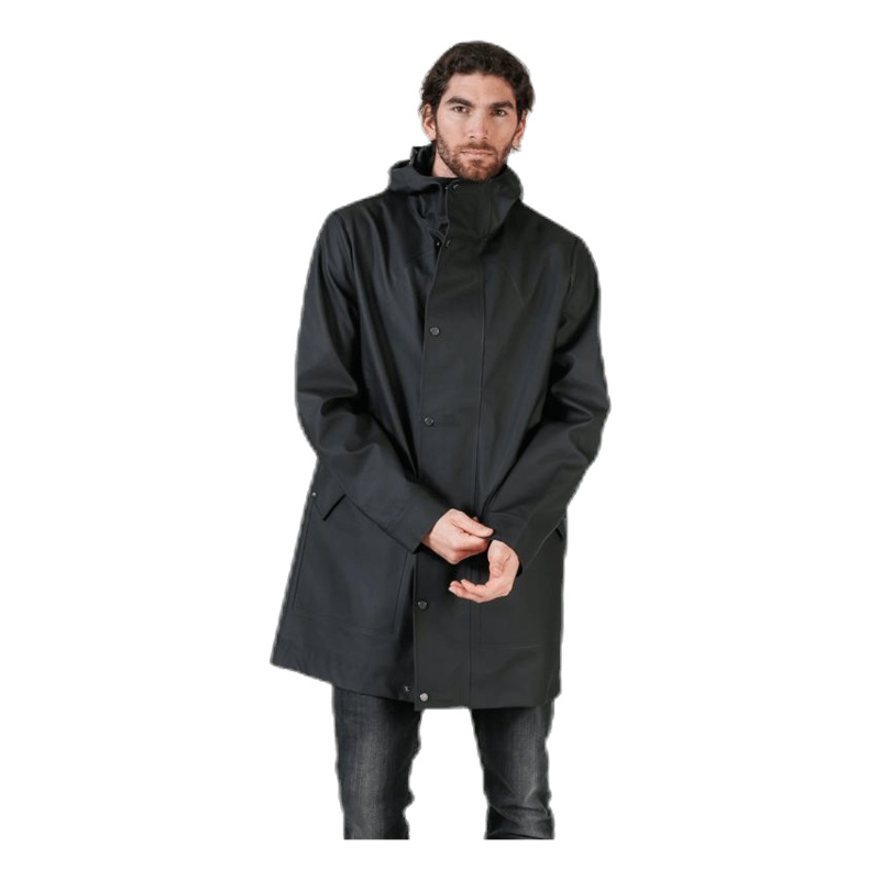 Denna lngre regnjacka hller dig fri frn regn, samtidigt som den ger dig en stilren look. Jackan har en bra andningsfrmga och ven en justerbar huva.