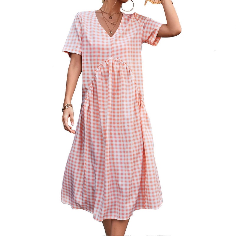 Be the first to review “Plaid Print Dress Breathable Short Sleeve Ruffle V Neck Casual Summer Dress for Women Pink L_-sy_-sy | Fruugo SG”