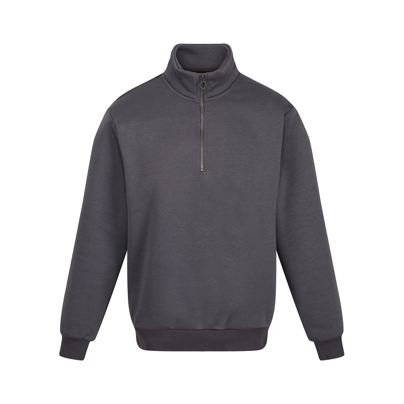 The men\u0092s Pro 1\/4 zip sweatshirt from Regatta Professional is the ideal work layer \u0096 a work jumper made from sustainable cotton and polyester for long-lasting comfort. Pull down the zip for instant air flow.