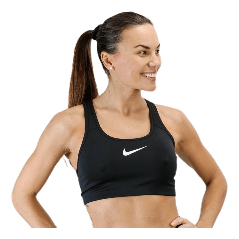 Nike Swoosh Sports Bra fr damer har en sammanhllande passform som ger medium support vid en mngd trningsaktiviteter. Axelbanden skapar en stabiliserande spnst som minskar studsandet vid snabba rrelser i olika riktningar.