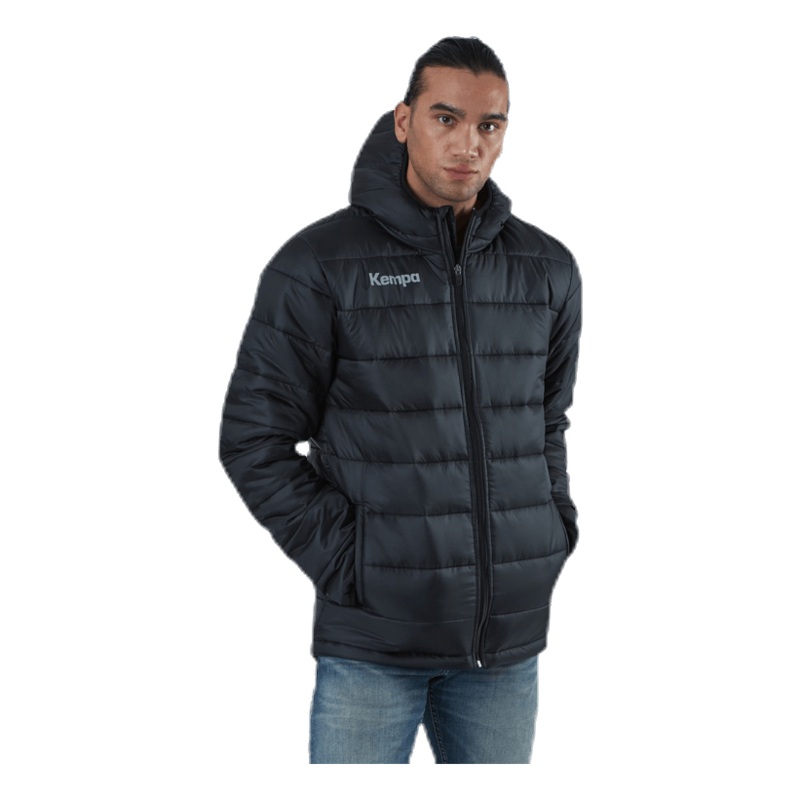Varmfodrad jacka med huva. Reflekterande Kempa logo. Sidofickor med dragkedja. Funktionella och frstrkta rmavslut.