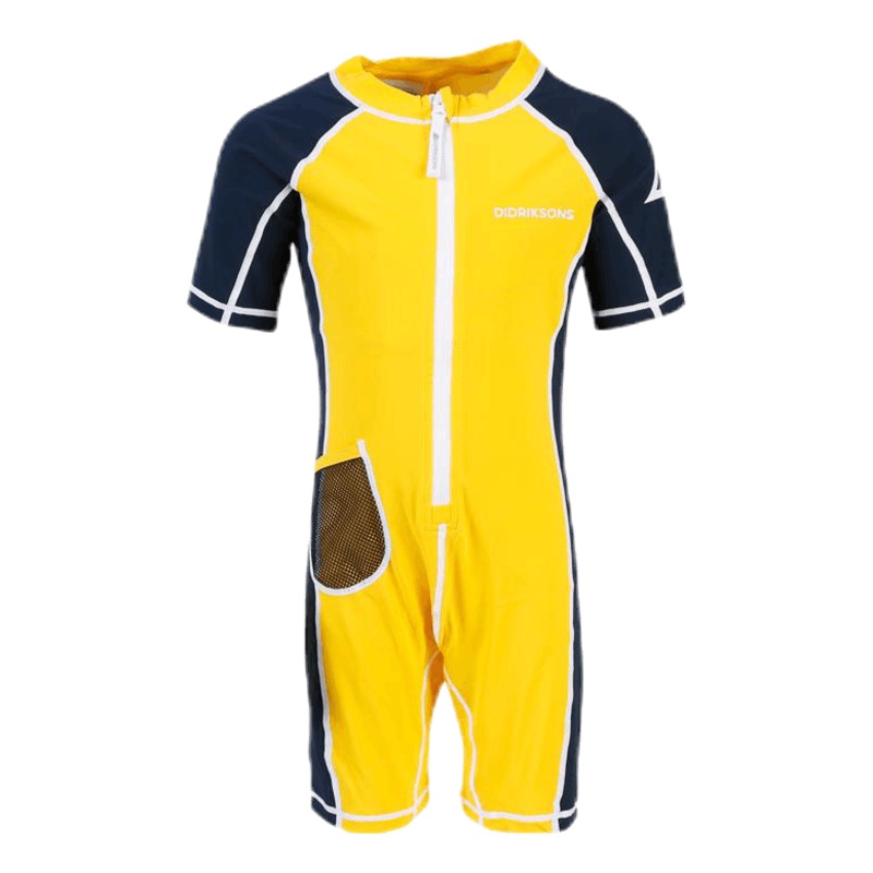 UV-drkt , s att de har bra skydd mot solen nr de leker p stranden. Reef har UPF50+ och en praktisk mesh-ficka att frvara havets sm fynd i samtidigt som sanden rinner ut. Dragkedja lngs hela framsidan fr att smidigt kunna kls p och av. Extra hllbart material.