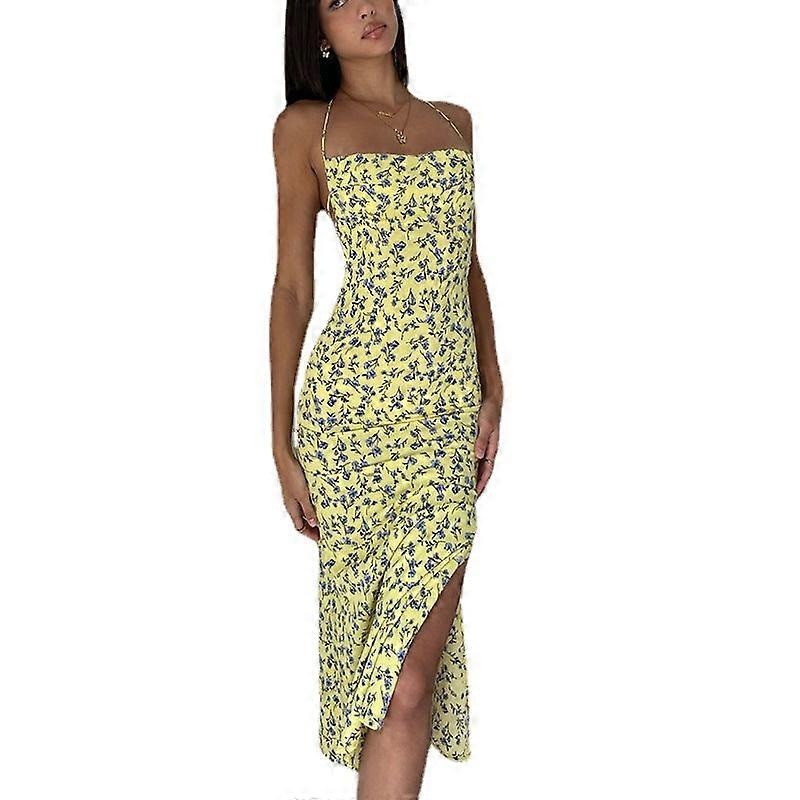 Description Specification: Pattern: Flower color. Style: Commuting. Collar type: One word collar. Waist type: High waist. Placket: Pullover. Combination form: Single piece. Sleeve length: Sleeveless. Skirt length: Long skirt. Clothing style details: Printe