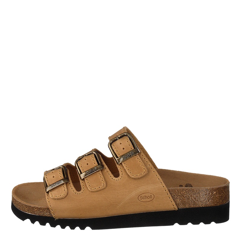 Scholl sandal RIO med en flexibel korksula och en sklad innersula fr att ge bsta std till foten och drmed hllningen. Teknologin bakom r BIOPRINT ADAPTA. Den ergonomiska designen fljer fotens former och ger ett extra std till fotvalvet fr att n bsta viktfrd