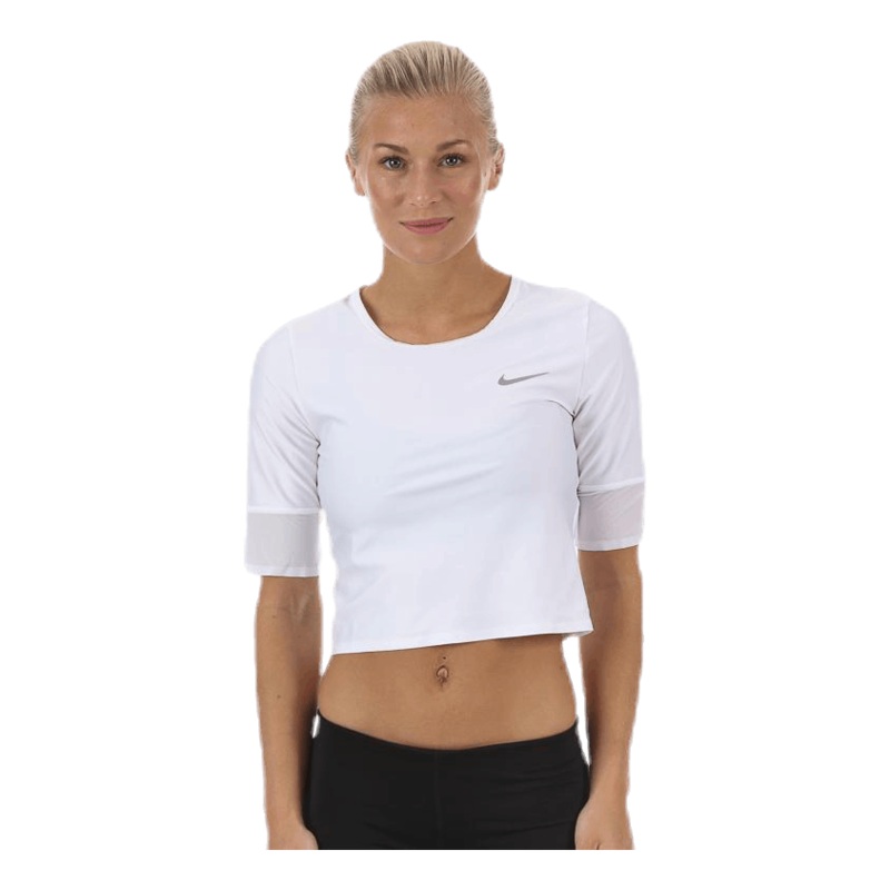 Nike Women’s Short-Sleeve Running Top slutar vid midjan och har en kroppsnra passform fr maximal fljasamhet. Den r tillverkad av nttyg med andningsfrmga och svettavlgsnande std, och kommer att hlla dig sval och bekvm medan du lgger kilometer efter kilometer bakom dig.