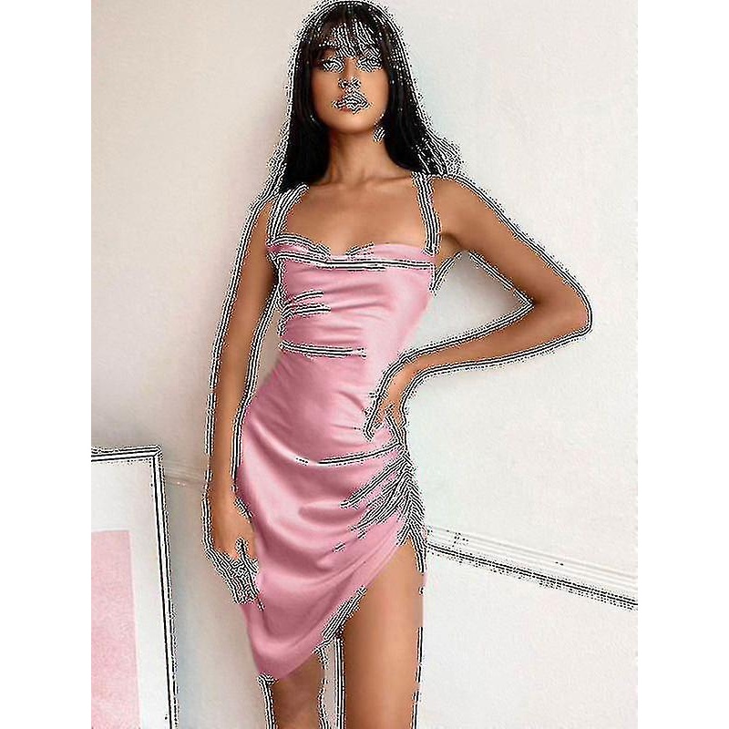 Satin Women Strap Mini Dress Ruched Lace Up Cross Bandage Backless Bodycon Sexy Party Elegant Club | Fruugo SG