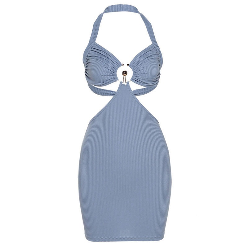 Sexy Bodycon Mini Dress for Women Summer Cutout Tie Backless Sleeveless Halter Short Dress Party Club Pencil Dress Blue M | Fruugo SG