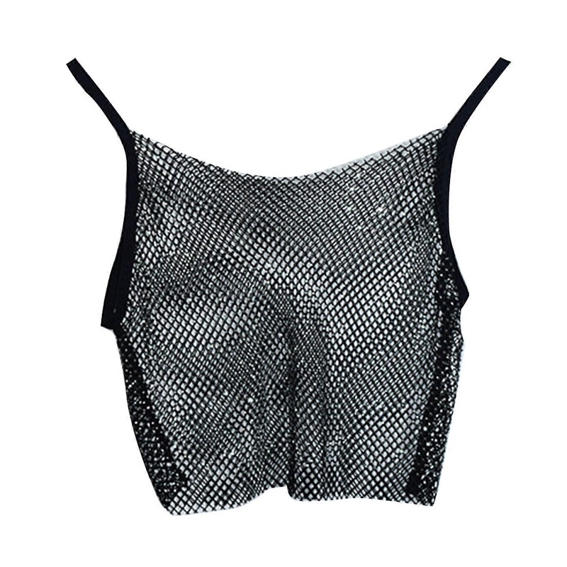 Description Features: This short sparkly tank top is a must-have for any fashion-forward woman! Adorned with shining rhinestone, it is the perfect statement piece to add some charm to your wardrobes. Made from high-quality nylon, this mesh see-through vest