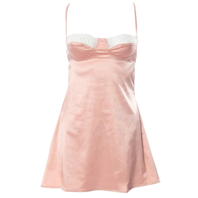 Solid color, sexy see through floral lace at chest, hollow chest, A-line, above knee short length.