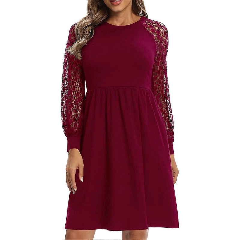 Description 1Lace Sleeves: Our wlong sleeve dresses have lace sleeves, this design not only embellishes your slender arms but also adds a touch of elegance and is very charming. 2Round Neck: Our dresses have a round neck, which slightly trims your neck, ma