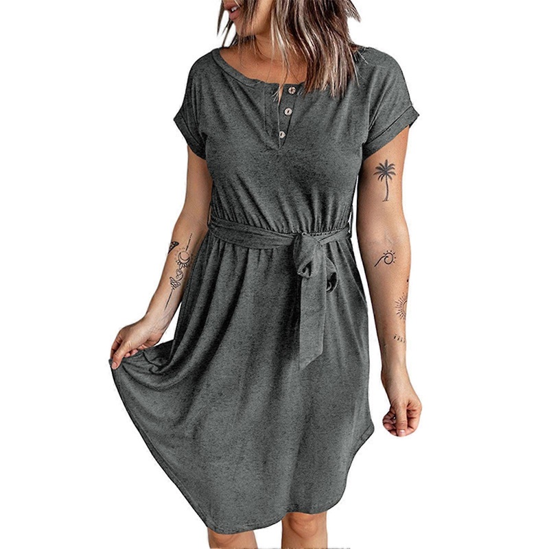 Short Sleeve Dress Fashion Casual Machine Washable Skin Friendly Breathable Women Dress for Summer Grey L | Fruugo SG