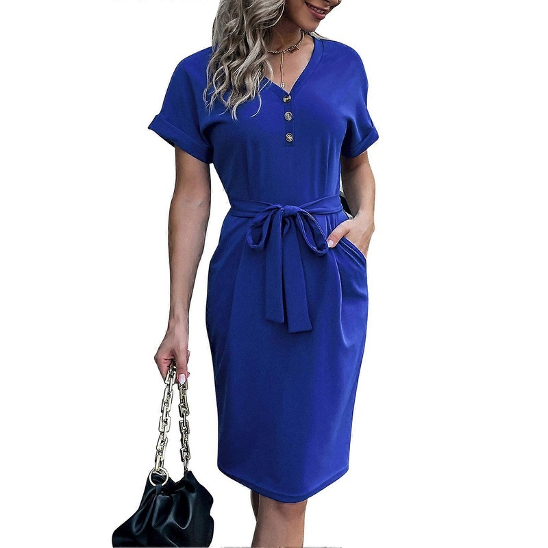 Description Item Type: Short Sleeve DressMaterial: 997% Polyester fiber, 3% polyurethane fiberWashing Guide: Machine washableLength: S: 99cm / 39in, M: 101cm / 39.8in, L: 103cm / 40.6in, XL: 105cm / 41.3inBust: S: 102cm / 40.2in, M: 106cm / 41.7in, L: 112c