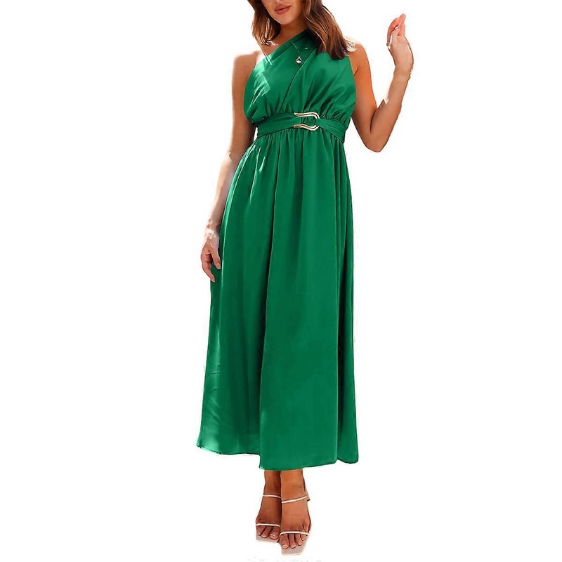 rmelloses Sommerkleid, einschultrig, Partykleid fr Damen, Knigsblau, Maxi-Cocktailkleid