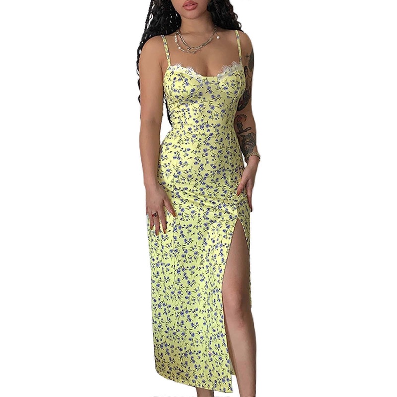 This skirt is printed with flower, whichMake you look elegant. Heart neck makes you look unique. The high-split skirt can make your slenders thighs perfectly decorating your leg lines.