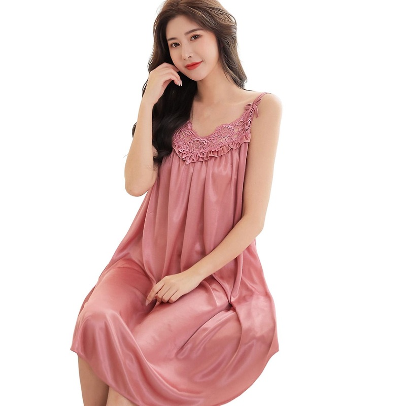 Description Description: What makes you become more sexy and charming is that woman sling nightgown has the lace stitching, solid color, bow decor, v-neck and spaghetti straps design. Wearing this smooth and thin nightshirt, you will have enough room to mo
