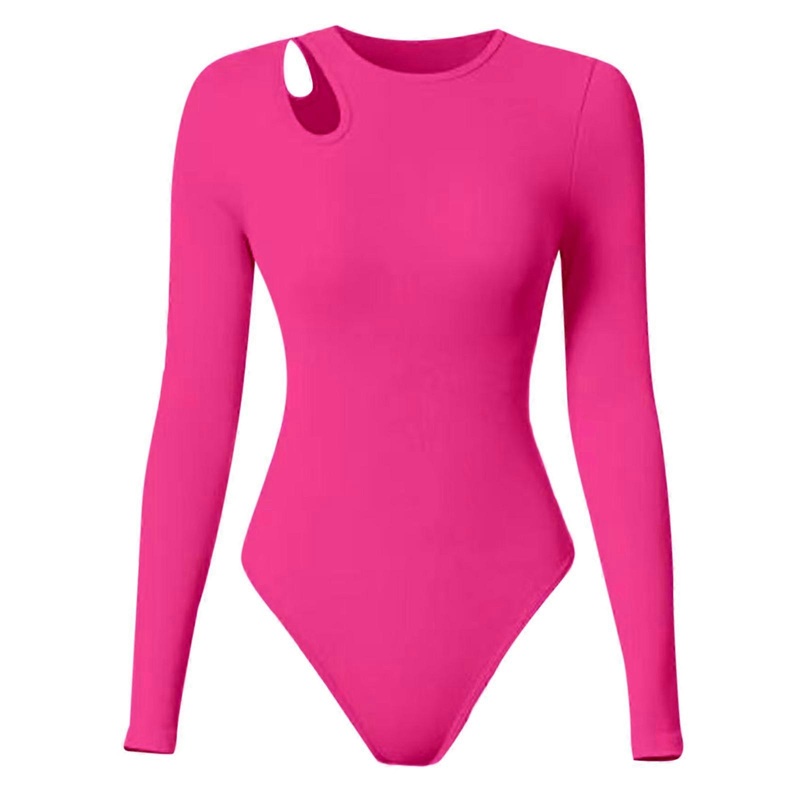 Sophisticated Crew Neck Bodysuit with Shoulder Cutouts Modern and Stylish Long Sleeve Women’s Apparel rose Red S | Fruugo SG