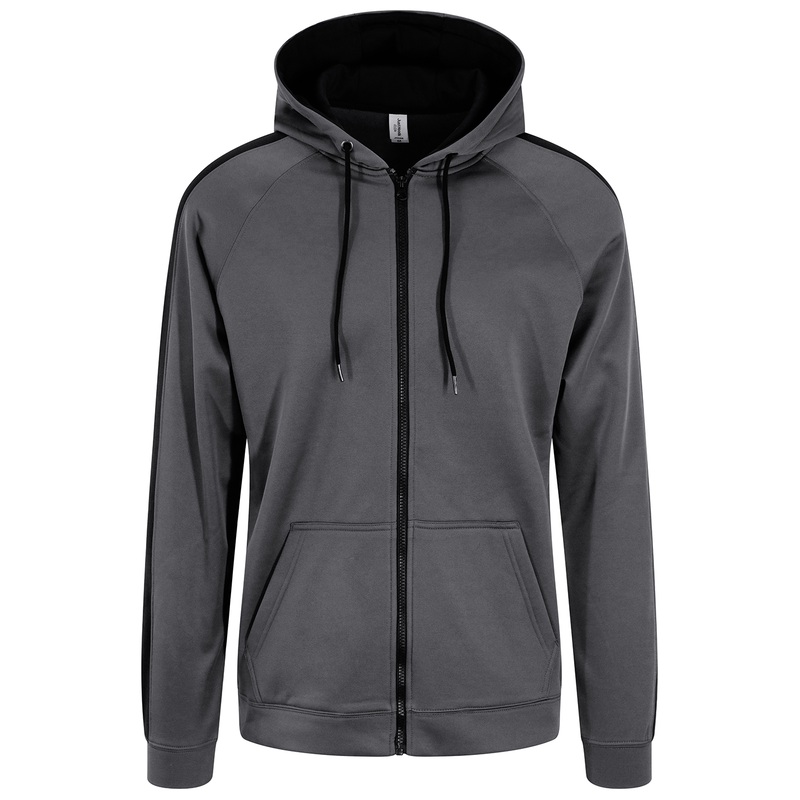 Give your activewear wardrobe an update with this sporty zoodie. Features include contrast panels on sleeves, a full-zip front and kangaroo pocket. This style is great layer for training and for wearers with an active lifestyle.
