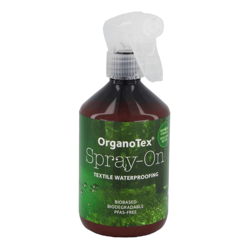 Spray-On Textile Waterproofing r en textil ttskikt fr alla typer av textilier. Det frbttrar tygets vatten- och smutsavvisande egenskaper och frlnger plaggets livslngd genom att skydda fibrerna och terstlla deras frmga att stta bort vatten. Behller materialets andningsfrmga, frg och struktur d impregneringen inte bildar en hinna p ytan utan binder till textilfibern. Miljmrkt med OEKO-TEX Eco Passport och USDA-certifierad biobaserad produkt.
