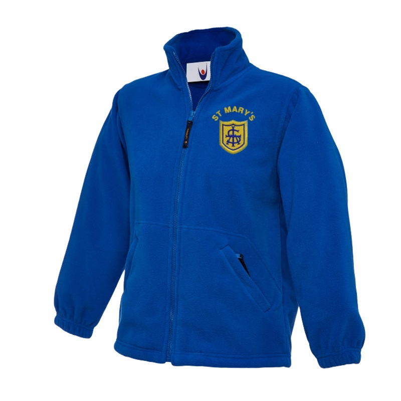 St. Mary’s Fleece with sewn left chest logo\r\n\r\n\r\n\r\n\r\n\r\nUC603\u00a0Childrens Classic Full Zip Fleece Jacket\r\n\r\n\r\n \tHalf Moon Yoke\r\n\r\n\r\n \tTwin Needle Stitching\r\n \tFull Self Coloured Zip\r\n \t100% Polyester Super Anti Pill Micro Fleece\r\n \tElasticated Cuffs\r\n \t2 Self Coloured Covered Zipped Pockets