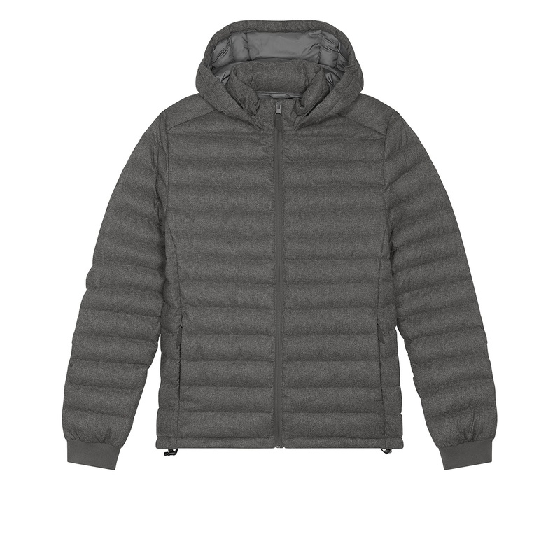 This wool-like men\u0092s padded jacket is fully quilted with side panels for a better shape.