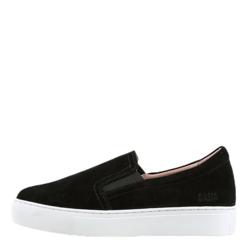 Starlily frn Dasia r en slip-on med ovandel i svart lder p en platsula i gummi. En praktisk elastik p skons ovandel ger ett lttare insteg. Foder och innersula r i mjukt skinn. Innersulan har ett tjockt lager av mjuk Memory Foam, vilket ger dig hgsta tnkbar