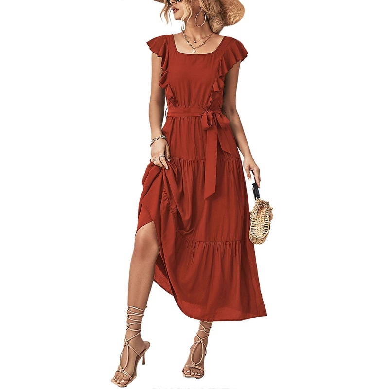 Ladies Elegant Ruffled Long Maxi Dress! Featuring a solid square collar and lace-up design, this vintage party dress will turn heads.