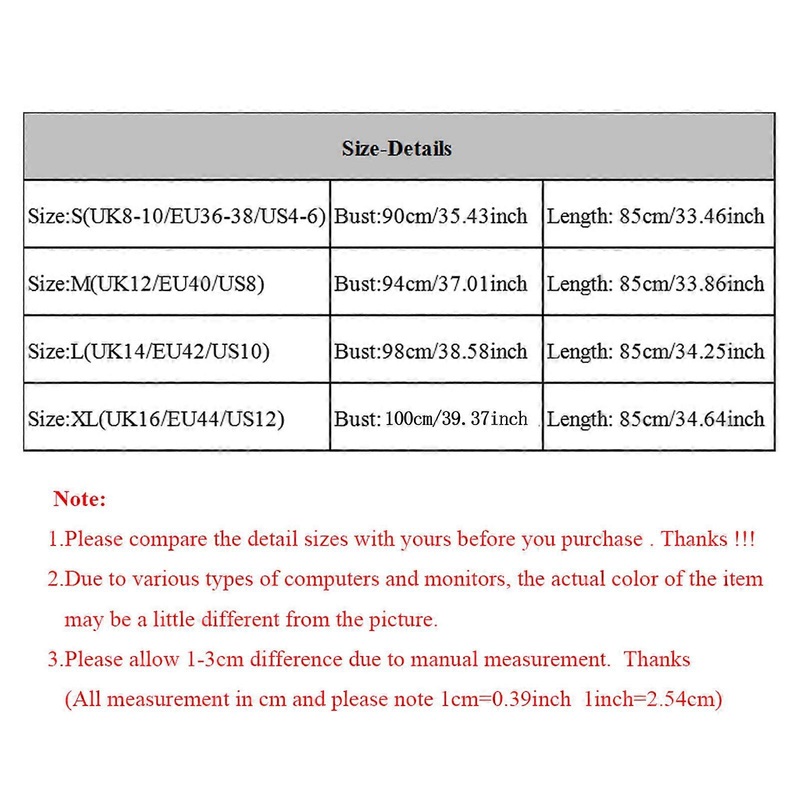 [“Features:\r\nProduct Type: Women’s Mini Dress\r\nSize Type: Regular\r\nStyle: Sundress\r\nPattern: Solid\r\nColor: As pictures shown\r\nSize: S / for M / L / XL (Chinese Size,please follow the size chart to select )\r\nNeckline: U- Neck\r\nSleeve Type: Sleeveless\r\nExact Material: Cotton Blend\r\nOccaisons: Casual / Summer / Holiday\r\n\r\nSize-Details\t\t\t\t\t\t\t\r\nSize:S(UK8-10/EU36-38/US4-6)\t\tBust:90cm/35.43inch\t\tLength: 85cm/33.46inch\t\r\nSize:M(UK12/EU40/US8)\t\t\tBust:94cm/37.01inch\t\tLength: 85cm/33.86inch\t\r\nSize:L(UK14/EU42/US10)\t\t\tBust:98cm/38.58inch\t\tLength: 85cm/34.25inch\t\r\nSize:XL(UK16/EU44/US12)\t\t\tBust:102cm/40.16inch\t\tLength: 85cm/34.64inch\t\r\n\r\n\r\nNote:\r\n1.Please compare the detail sizes with yours before you purchase . Thanks !!!\r\n2.Due to various types of computers and monitors, the actual color of the item may be a little different from the picture.\r\n3.Please allow 1-3cm difference due to manual measurement. Thanks (All measurement in for cm and please note 1cm=0.39inch 1inch=2.54cm)\r\n\r\nPackage Content:\r\n1 x Dress”]