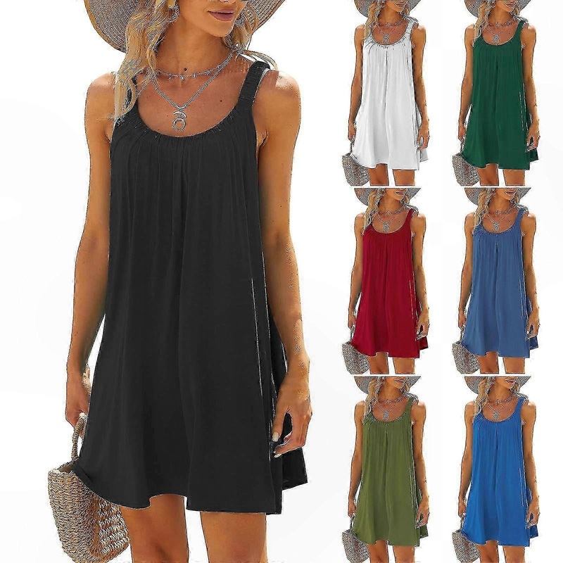 Summer Beach Cover-Up Dress for Women Sleeveless Loose Fit Casual Vacation Tank Dress Solid Color Short Sundress 2023 Warm Weather Outfits | Fruugo SG