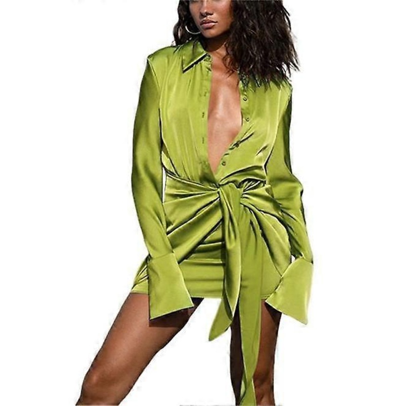 Description Summer Casual A-Word Polo Lapel Women'S Fashion Temperament Strap Long Sleeve Shirt Dress