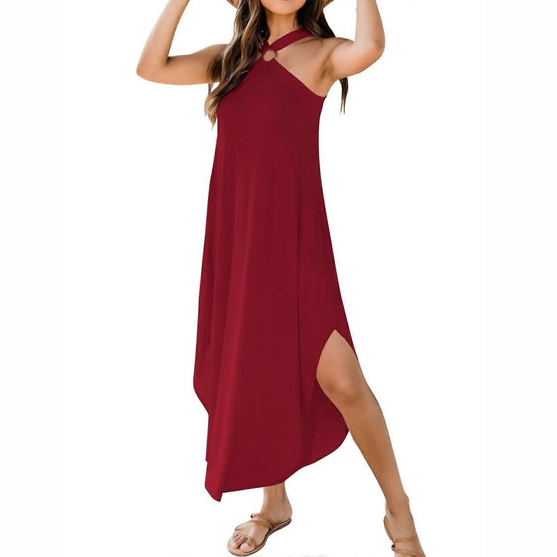 Description Features: This halter dress is made cotton. The material is very soft and comfortable. This loose dress is featuring halter design that can show your beautiful neck&shoulder. Occasion: this halter dress perfect for wearing at seaside, swimming