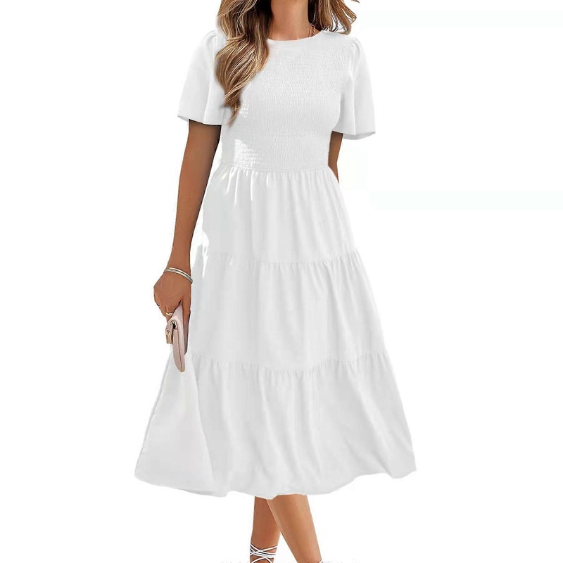 Features: This dress is made polyester. The material is very soft and comfortable. This high waist dress is featuring round neck design that can show your beautiful neck&shoulder.