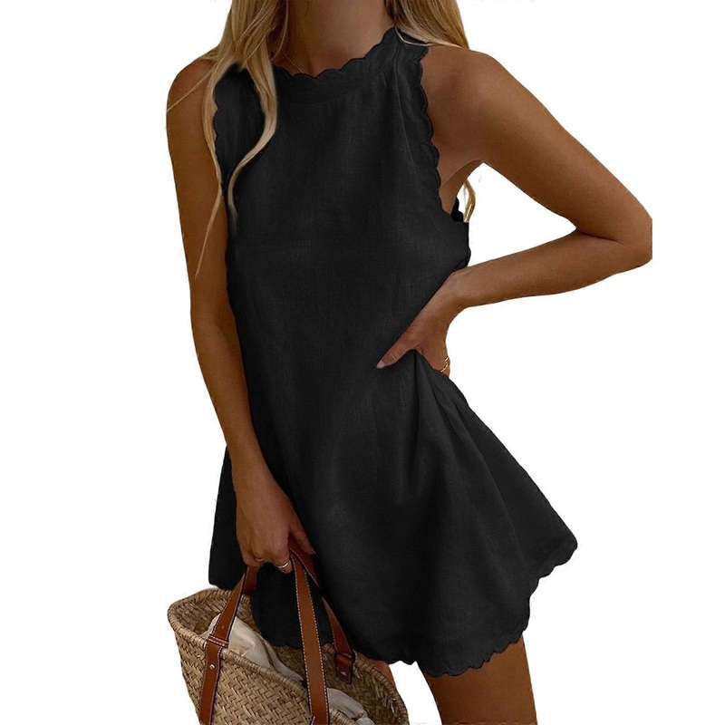 Tank dresses for women cute summer sumdress is sleeveless, halter neck, cute scalloped cutouts, a-line dress, flowy and swing.