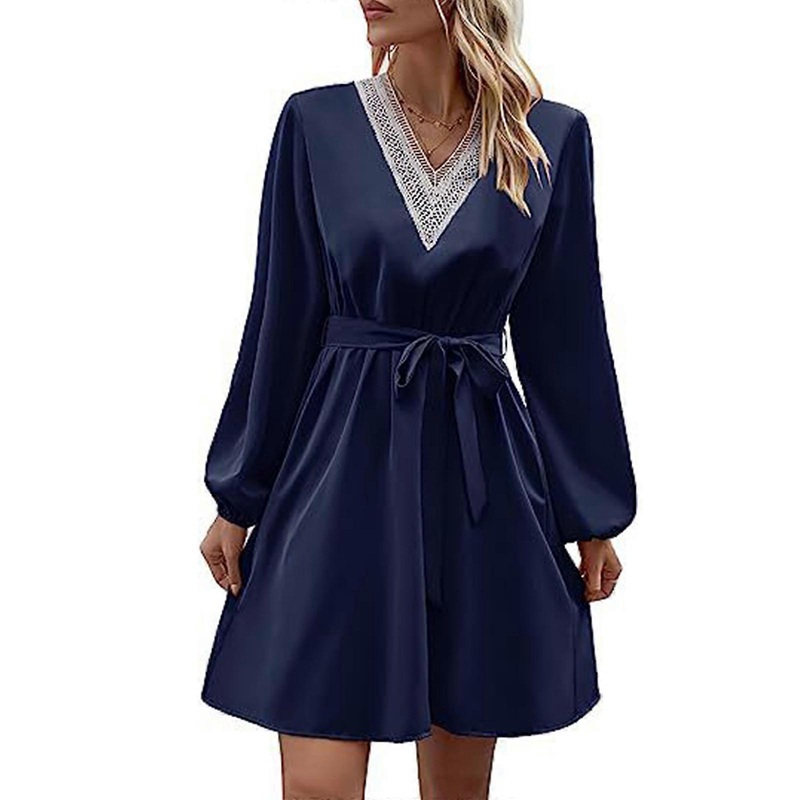 Designed for all women who value comfort and style, our v neck lace long sleeve dress is perfect for any occasion.