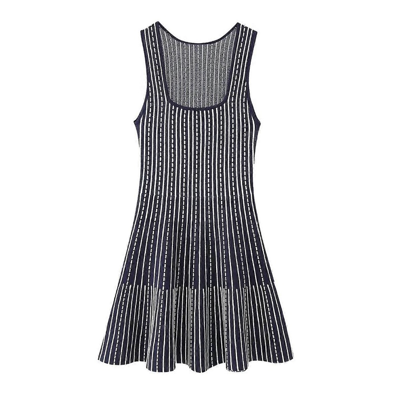Description Summer Striped Kintted Dress New Square Collar A-line Sleeveless Dress Sweet Casual Elastic Mini Camisole Dress