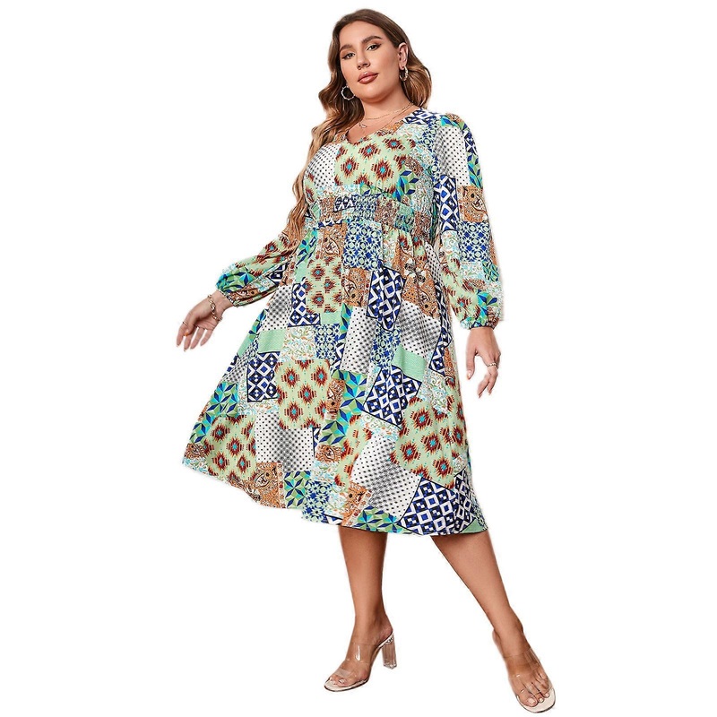 Description Features: Plus size dress is comprised of polyester fiber, which is soft, lightweight, skin-touch, breathable and cool fabric, supports machine washed. Unique design: Elegant dresses for women is loose, V neck, shirred waist, long sleeve, A lin