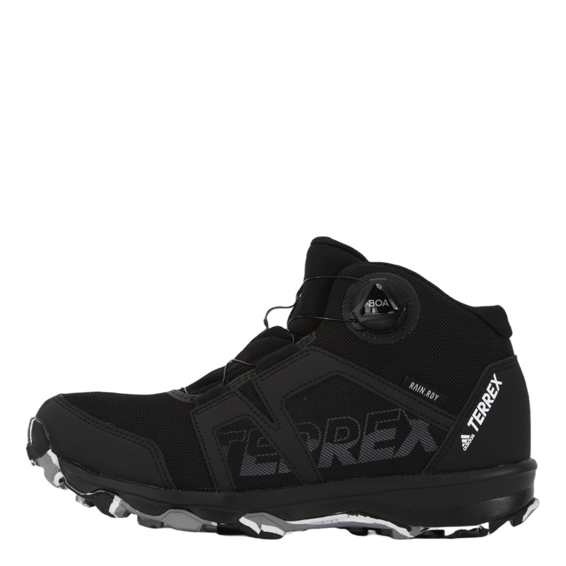 Vandringsskor fr barn i alla vder. Varje pl och stenblock ropar. Vtt eller torrt, hgt eller lgt, barn kan utforska med sjlvsker dragkraft och torra ftter i dessa adidas Terrex Boa Mid RAIN.RDY vandringsskor. En enkel passform lter sm hnder justera sina egn
