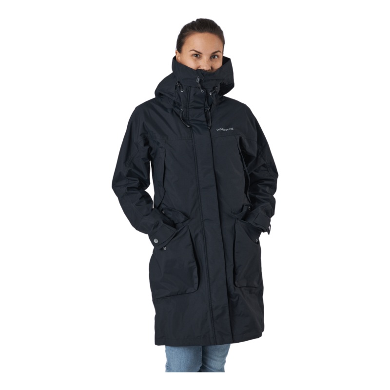 Thelma r en 100% vatten- och vindtt parka med tejpade smmar i en klassisk Didriksons-design. Tillverkad i en slitstark polyamid med matt yta. Thelma har en feminin passform som frstrks med en dragsko i midjan och nedtill. rmslutens vidd justeras med en try