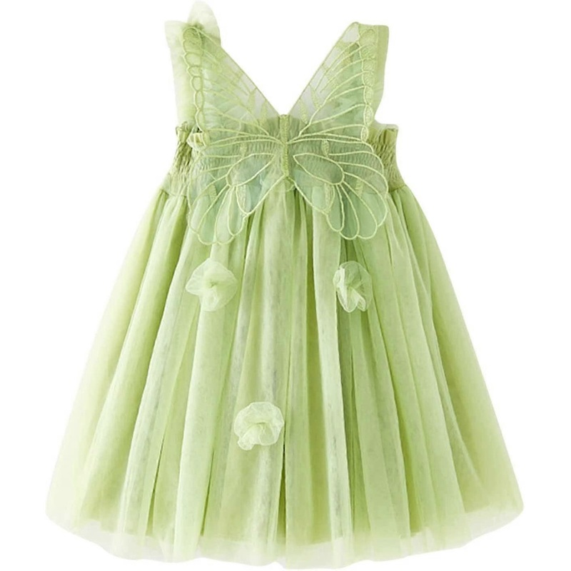 DESIGN: Toddler girls princess dress, sleeveless sling birthday party dress, elastic spaghetti strap top with fluffy tulle skirt,lace butterflywings,multi-layered and mesh tulle fluffy design, simple and style of skirt, make your little fairy look more sweet and pretty