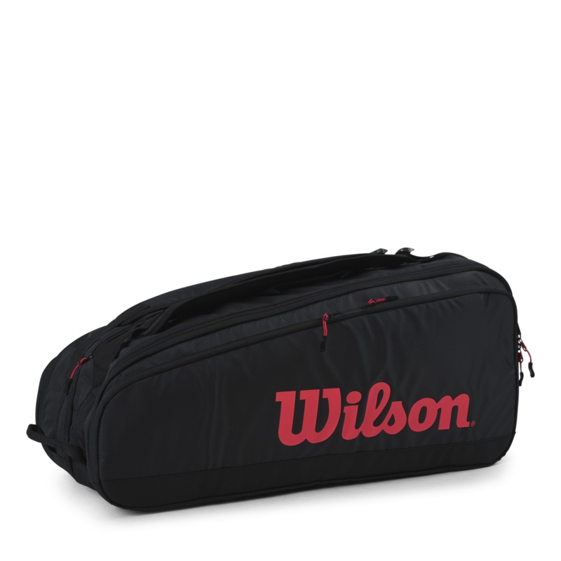 Wilsons Tour Collection omfattar skarp design, effektiv funktionalitet och lngvarig hllbarhet fr tennisspelare ver hela vrlden. Utrustad med tv huvudfack som rymmer upp till 12 racketar, erbjuder den hr vskan ett dubbelt brsystem och extra utrymme fr skor eller mindre personliga varor i en ficka med dragkedja som kantas lngs mittsmmen.