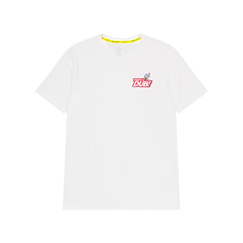 Omfamna arvet, br det med stolthet och lt UA Curry Dub Goat SS White T-shirt vara en terspegling av din uppskattning fr baskets storhet ett bevis p basketexcellens och det obestridliga arvet frn Stephen Curry. Den hr trjan kapslar in spelets anda och hylla