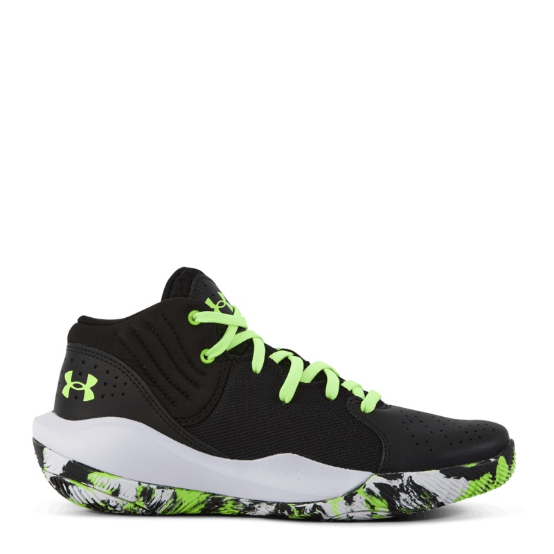 Inlst och redo fr start handlar UA Jet om prestanda. En EVA-mellansula ger dig den dmpning du behver, medan den klassiska lderverdelen ser bra ut p och utanfr banan. Kombination av mesh ;&; perforerat lder ger ltt komfort, hllbarhet ;&; andningsfrmga; Andningsbar mesh-tunga fr strategisk ventilation; Plysch ankelkrageskum fr kad komfort och std; Dmpad EVA-mellansula ger en ltt och responsiv knsla under foten; Yttersula i gummi anvnder fiskbensmnster fr att ge maximal golvkontroll och grepp.