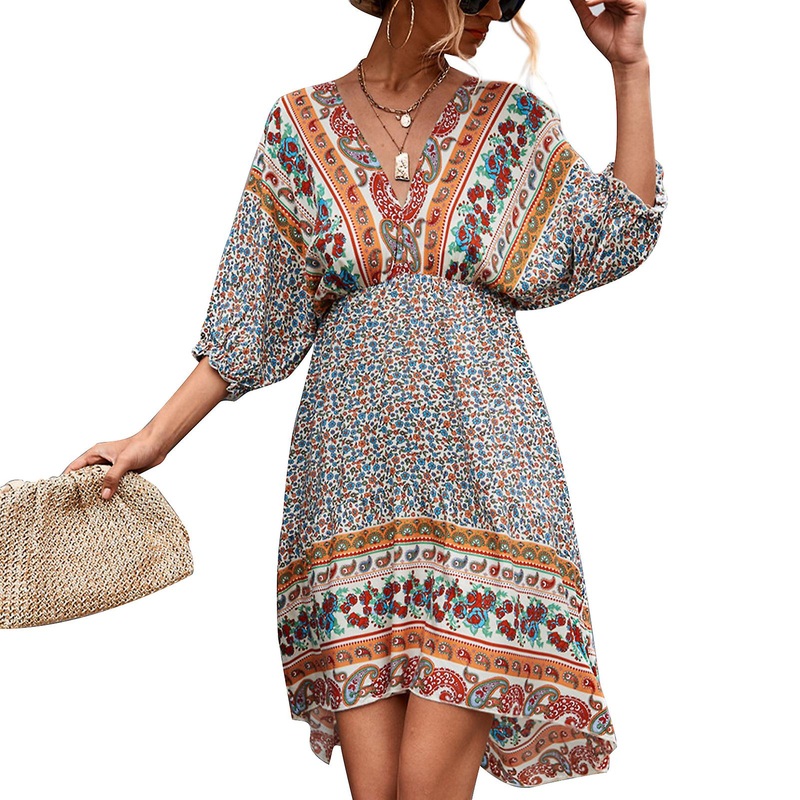 1.Floral Printed Dress: Positioning printing, delicate flower pattern on the dress, bright color, no fading, overall looks exquisite and elegant.
