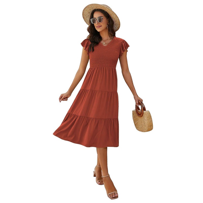 Features: Women Summer Casual Dress,V-Neck Mini Dress,Short Sleevele Ruffle Dress,ALine Sundresses For Women,V Neck Casual Dresses,Women Summer Dress,Swing Mini Dresses,Ruffle Sundresses,High Waisted Dress,Summer Short Sleeve Casual Dresses,Mini Summer Dresses,Flowy DressWoman Casual Dresses,Summer Dress For Women, Maternitys Dress , Feminine Short Flutter Sleeves