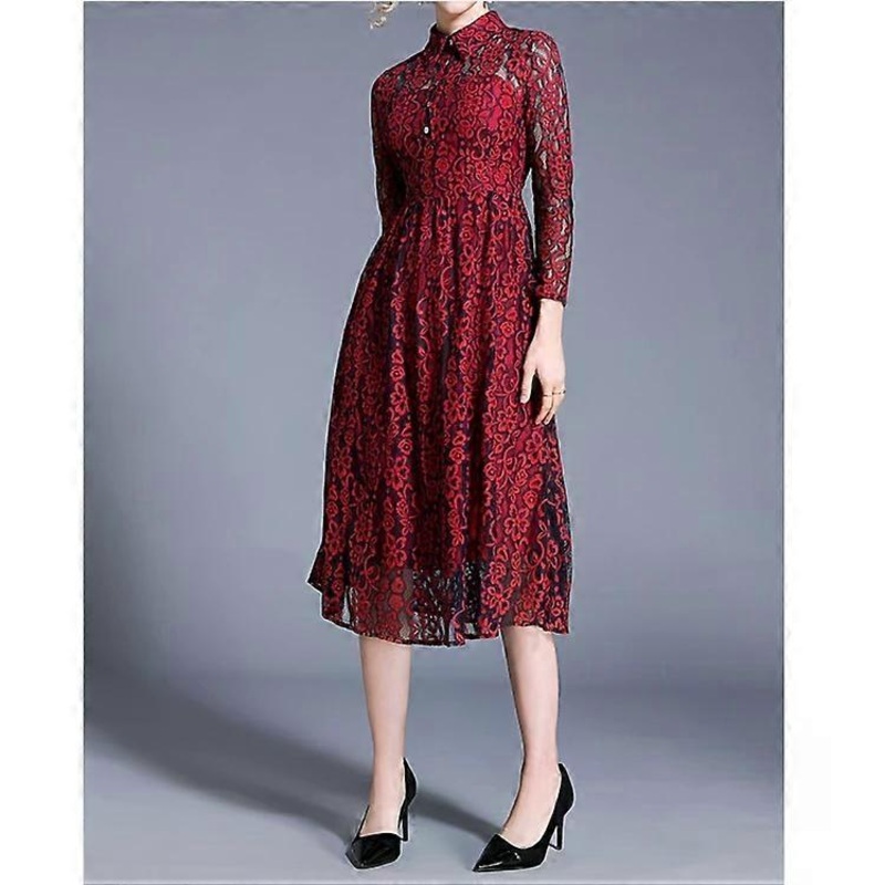 Vintage Lace Dress-Elegant Wine Red Fashion,Size L-Wine Red,L | Fruugo SG
