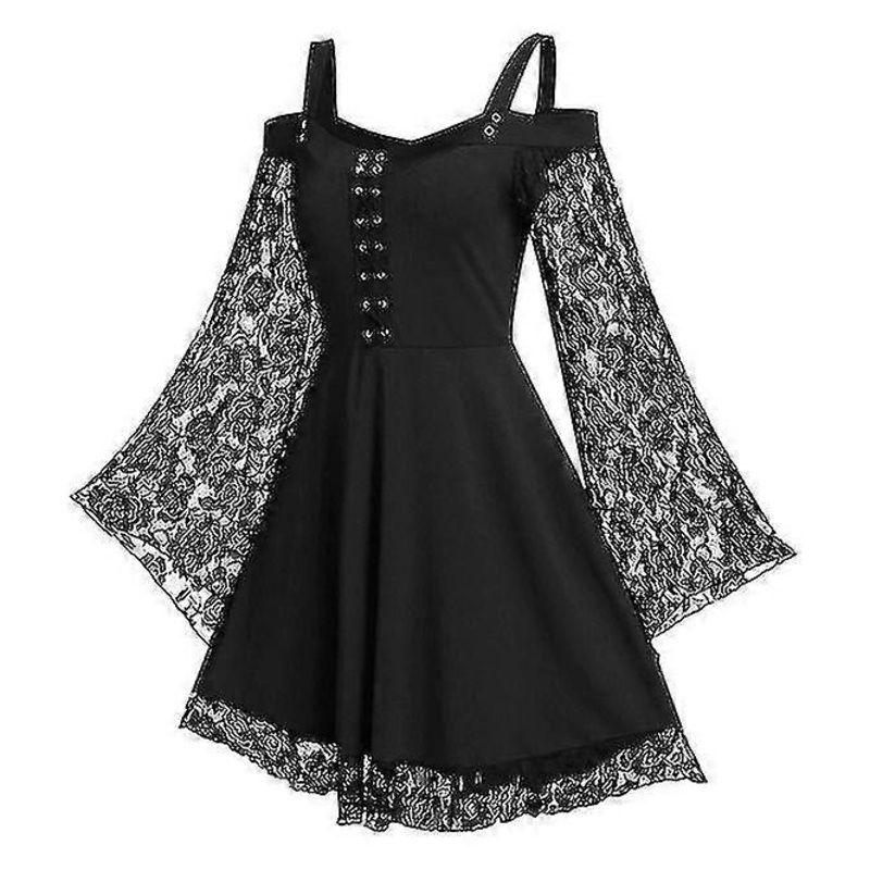 High-quality materials: lace + 95% polyester + 5% spandex. Lining: 98% polyester + 2% viscose fiber. Super soft, very elastic, lightweight, and breathable.Gothic retro dress: It can be used as a gothic retro party or wedding guest dress. With a hat, high heels, and a necklace for the bare neck, the perfect match will make you more feminine.ves, cuffs with buttons.Perfect version design: fit and flared shape help to hide the abdomen and flat waist. Loose lace sleeves can hide your arms, retro swing design and slender waist show your body curve, show your femininity and elegant temperature.Occasion: This gothic retro dress is suitable for many occasions, including retro-themed weddings, casual parties, churches, holiday parties, graduation ceremonies, or family dinners. Can make you the most brilliant girl.Size: L-XXXLDresses Length: Above KneeColor: black, red, green(optional)Packing List:1 x Dress